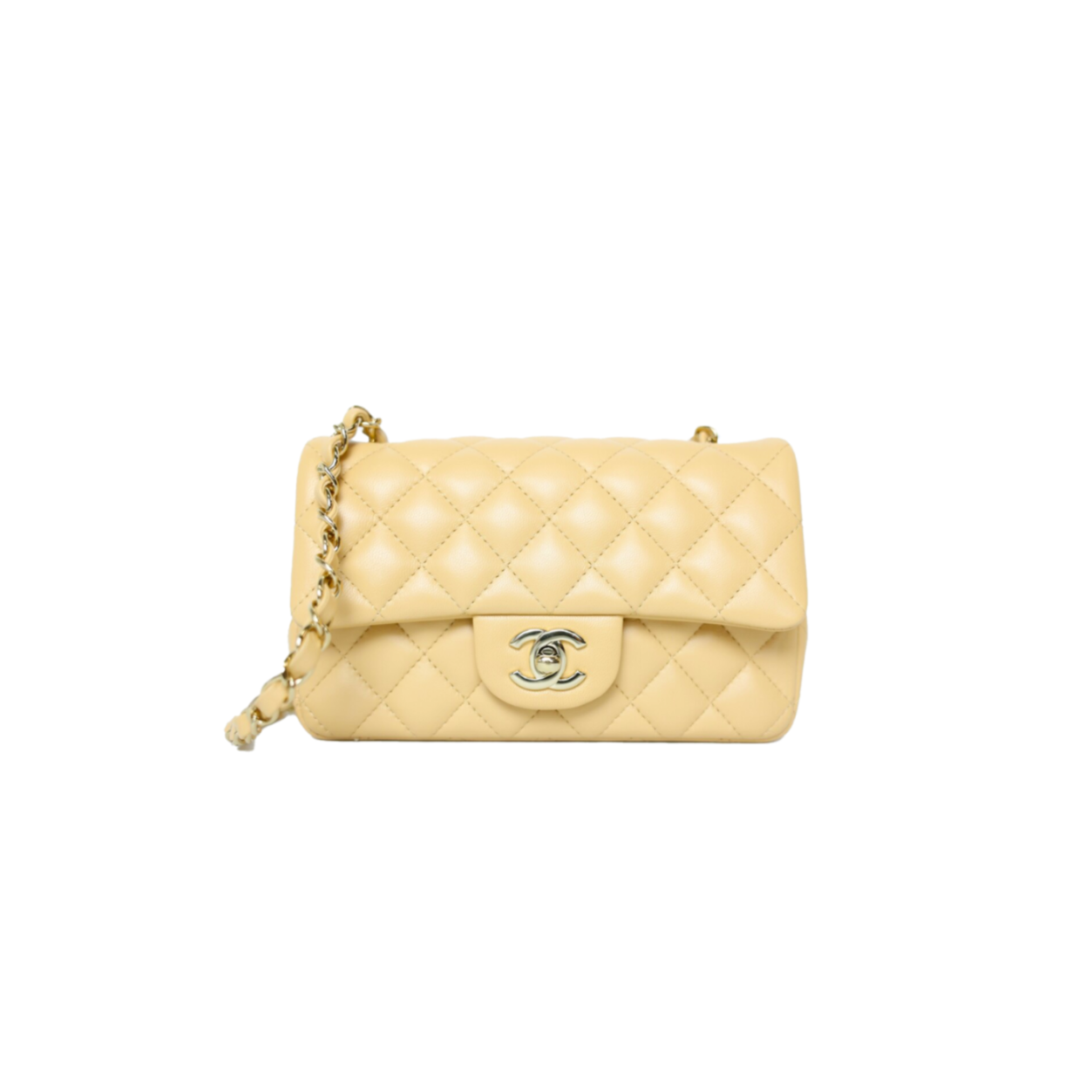 Ch**el CLASSIC MINI RECTANGLE, BEIGE LAMBSKIN LEATHER WITH LIGHT GOLD HARDWARE (20*12*6cm) Master Quality
