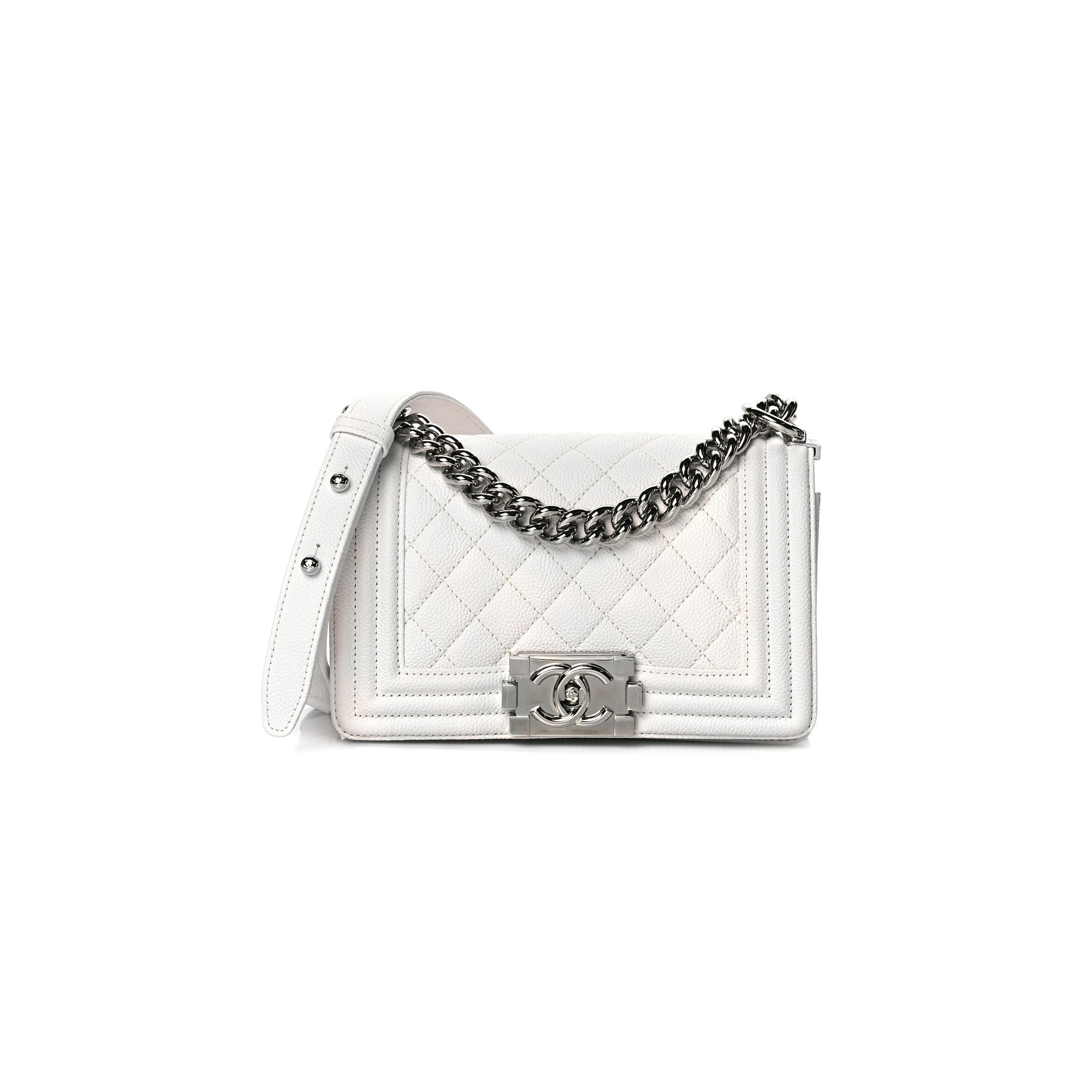 Ch**el CAVIAR QUILTED SMALL BOY FLAP WHITE A67085 B10211 10601 (20*12*8cm) Master Quality