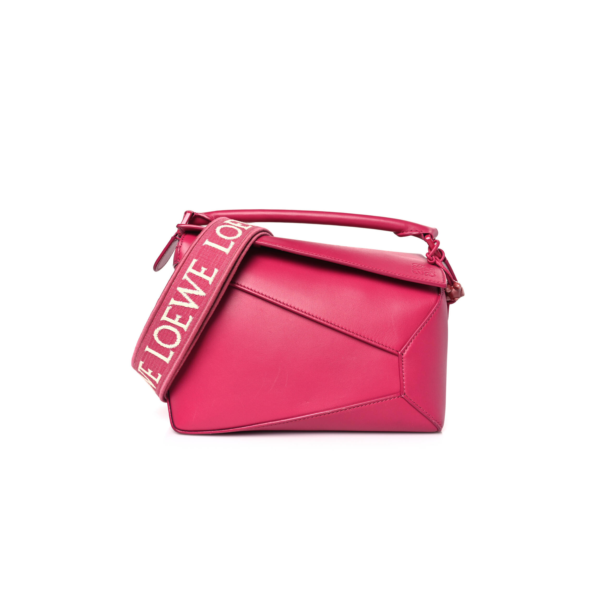 L0ew* SATIN CALFSKIN MONOCHROME SMALL PUZZLE EDGE BAG RUBY RED GLAZE (24*16.5*10.5cm) Master Quality