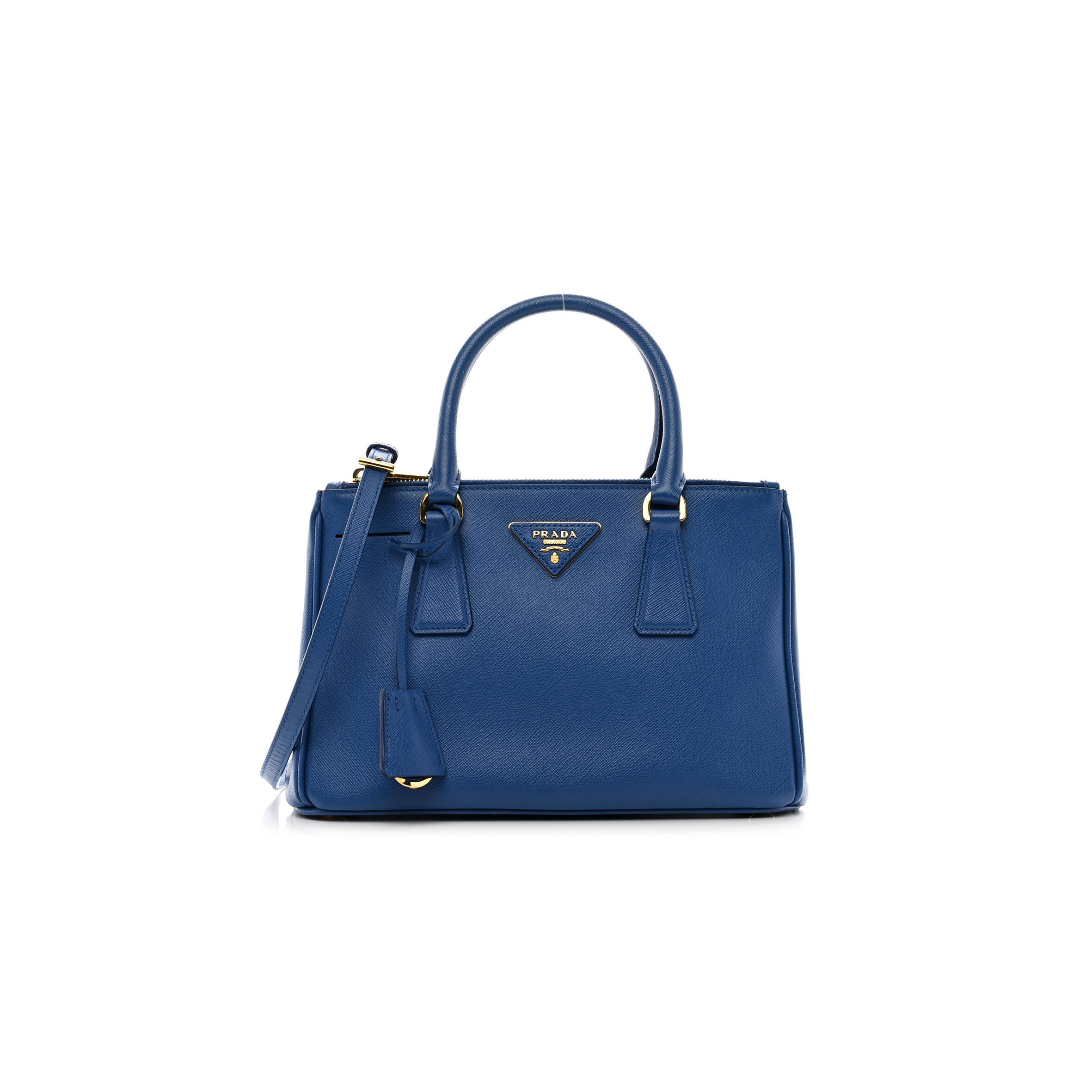 Pra*a SAFFIANO LUX MINI GALLERIA DOUBLE ZIP TOTE AZZURO (27*17*12cm) Master Quality
